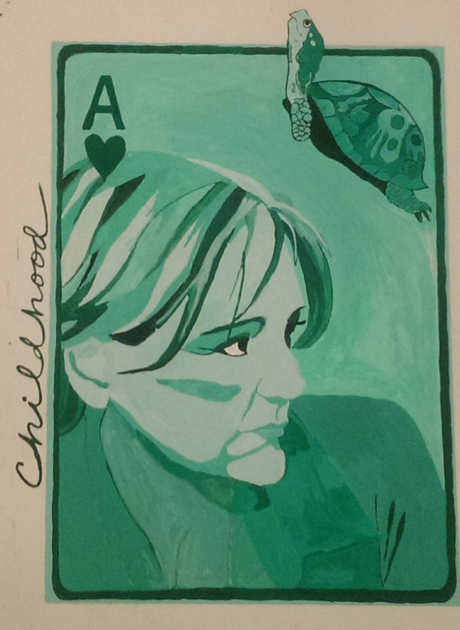 As soon as the plan was set, I felt like my dynamic self again – the girl who can accomplish anything she sets her mind to. Staring at a former art class project I’d recently uncovered, I remembered that, for some reason unbeknownst to me, Jennifer Harman had begun following me on Twitter before I’d ever looked her up. (I wasn’t actively following anyone at the time.) I took it as a sign and began drafting a letter to request an interview. I spent the entire evening trying to find a concise way to describe the moments that had led me to that day and my dream of writing a poker themed novel with a character inspired by her. The next morning, I messaged her a photo of my art project to prick her interest and request her personal email address so I could send the full story.