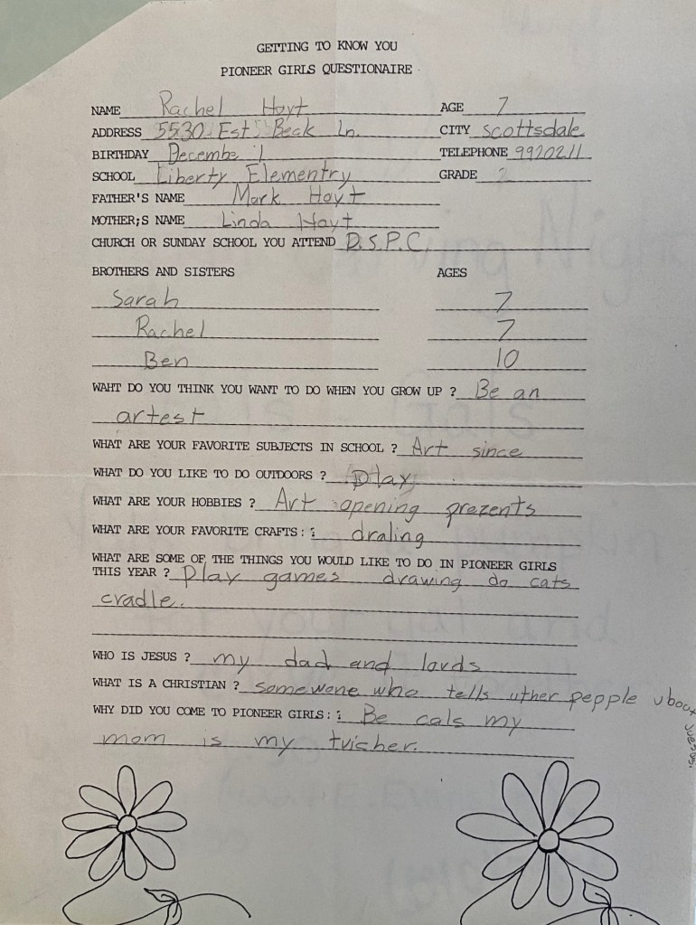 Annie Duke pointed out in her book that, “A great poker player who has a good-size advantage over the other players at the table, making significantly better strategic decisions, will still be losing over 40% of the time at the end of eight hours of play.” She gave several examples to prove this phenomena isn’t confined to poker… and I like to think the cosmic evidence has come into my life at times when I’ve been misinterpreting the raw data to remind me that, so long as I “win” more often than I “lose”, I can succeed. I told my mom a few months ago that, as much as I hate to admit it, I perform well under pressure. I said there were many times that I lost almost all of my chips very early in a poker tournament but managed to stay in the game long enough to make the money. A few weeks later, she came across a copy of a questionnaire I filled out at age 7 where I stated I wanted to “be an artest” when I grow up and emailed me right away. I was shocked. The tarot card reader was right. She knew something that neither I or my mother remembered.